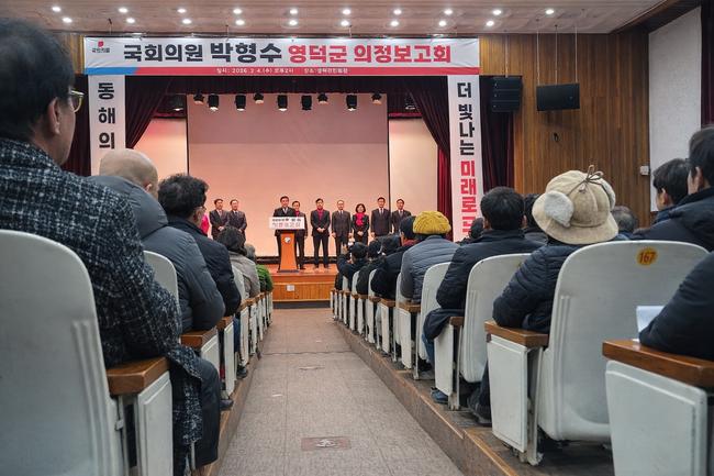 국민의힘 박형수 국회의원이 2026년 2월 4일(수) 오후 영덕군 영덕읍 국민회관에서 의정보고대회를 열고, 그간의 의정활동 성과와 향후 비전을 군민들에게 직접 보고했다.