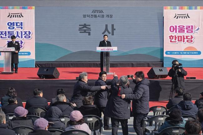 영덕전통시장은 과거 대형 화재로 장옥을 운영하던 상인들이 막대한 피해를 입었던 곳이다. 이후 영덕군은 긴급 임시시장을 설치해 상인들의 생계를 겨우 이어가도록 조치해 왔다. 어려운 여건 속에서도 상인들과 군민들은 오랜 시간 불편을 감내하며 전통시장을 지켜왔고, 이날 새롭게 현대식으로 건립된 시장의 준공은 군민 모두에게 오랜 상처를 위로하는 의미 있는 자리였다.