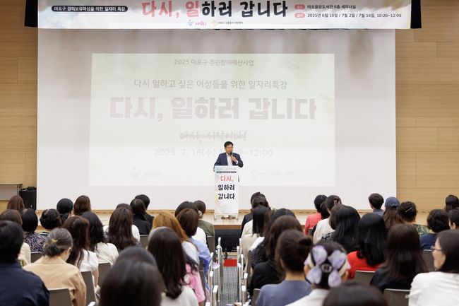 경력보유여성을 위한 일자리 특강 `다시 일하러 갑니다`에 참석한 박강수 마포구청장.