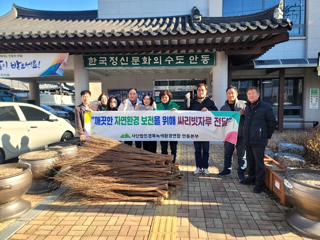 사단법인 경북녹색환경연합 안동본부가 1월 5일 안동시 안기동 행정복지센터를 방문해 회원들이 직접 제작한 싸리빗자루를 전달하며 친환경 생활 신천에 나섰다.
