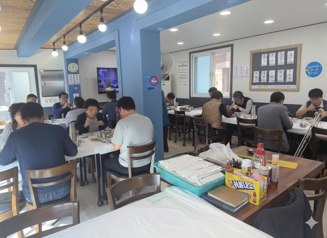 점심시간이면 지역 주민과 여행객들로 가득 차는 태훈회식당 내부 전경. 단골이 많다는 사실이 분위기에서 드러난다.